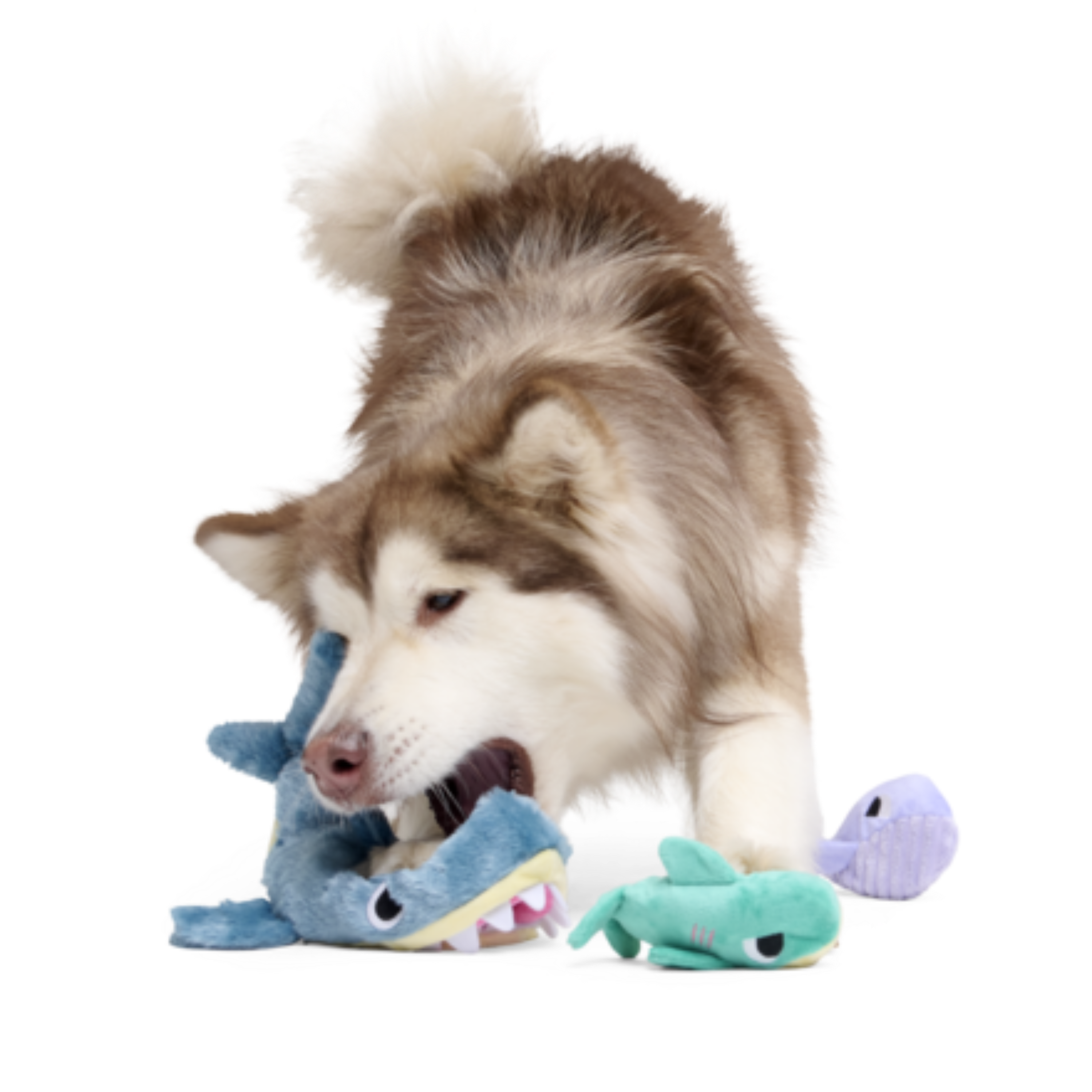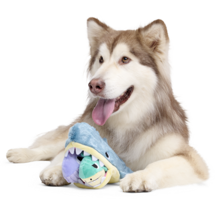 What’s that breaking through the ice layer? Arctic Chums have shoaled up to play! (Well, that, or the small shark and whale are trying to hide from the giant megalodon.) Either way, with three squeakers and crazy crinkle, this trio of prehistoric shark and whale dog toys will be the catch of the play. Hide treats or kibble inside the megalodon’s treat trap to bait your dog into playing even longer!