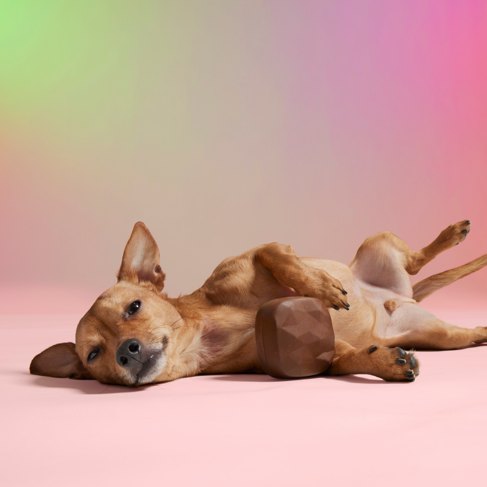 We’ve baked up some goods for heady pups who enjoy a nice relaxing chew sesh. This natural rubber toy is vanilla-scented to keep your dog pawing and jawing. Hey, is that squeaking sound freaking you out too?