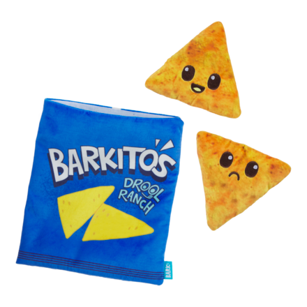 Don't let anyone tell you otherwise, Drool Ranch Chips are a nutritious part of any balanced playtime diet. The two squeaky chips are perfect to share. Hide a treat in the crinkly bag for another flavor of fun!