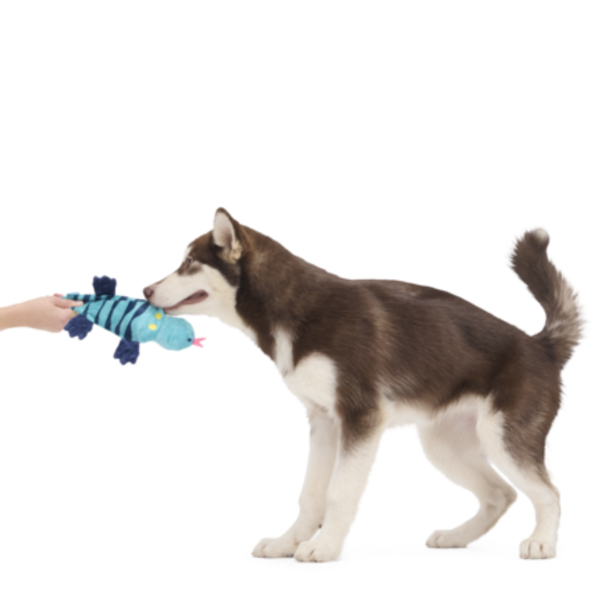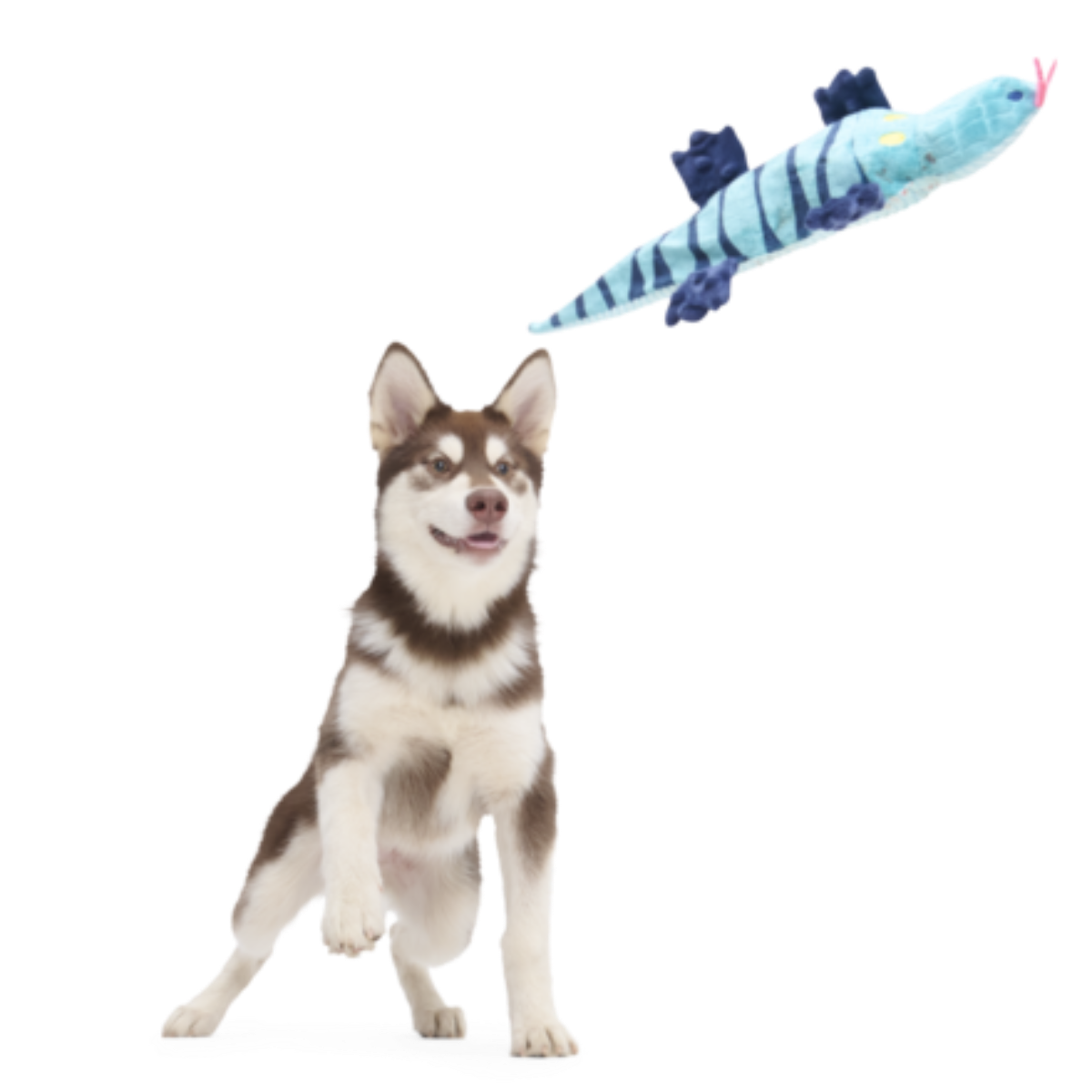 The Megalania, better known as a prehistoric giant lizard, might’ve measured anywhere from 12 to 25 feet long, and weighed anywhere from 500 to 4,000 pounds! Luckily Megalania Meg is …pretty light. With less fluff, this Megalania dog toy contains two squeakers and crazy crinkle, all within her thrashable, whip-n-flip body. Yep, good thing she’s not 4,000 pounds, otherwise playtime might look a *little* different!